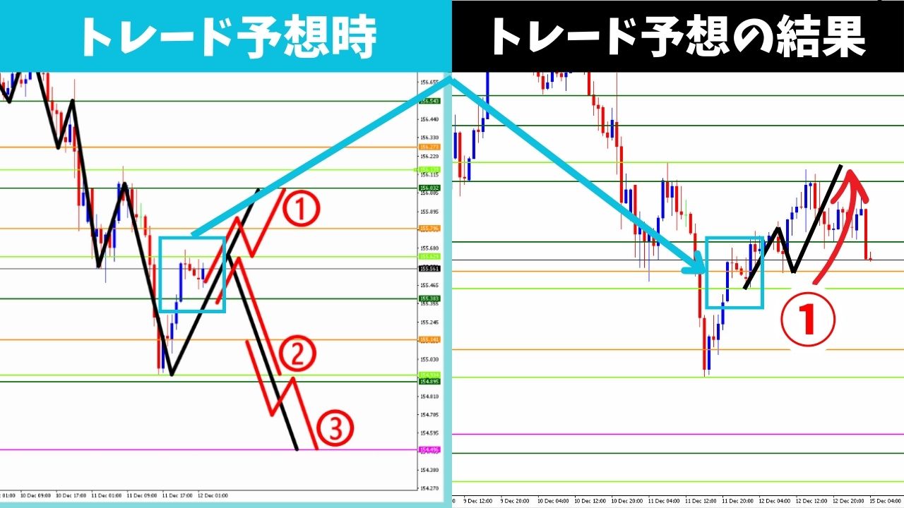 前回(2025年12月12日金曜日)のトレード予想の結果は以下になります。