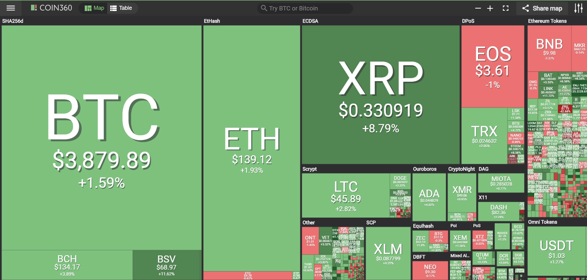coinmarketcap(コインマーケットキャップ)のサイトから、ドミナンス(各銘柄が仮想通貨全体の時価総額に占めるパーセンテージ)を定点観測していきます。仮想通貨全般が下方向に大きく動き出している相場状況を受け、毎日更新することとし、仮想通貨業界を俯瞰および転換期を早期に発見することを目的とします。