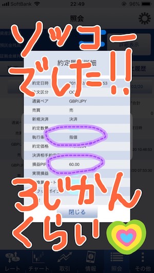 → 利食いは60pips、損切りは50pipsでOCOでセット