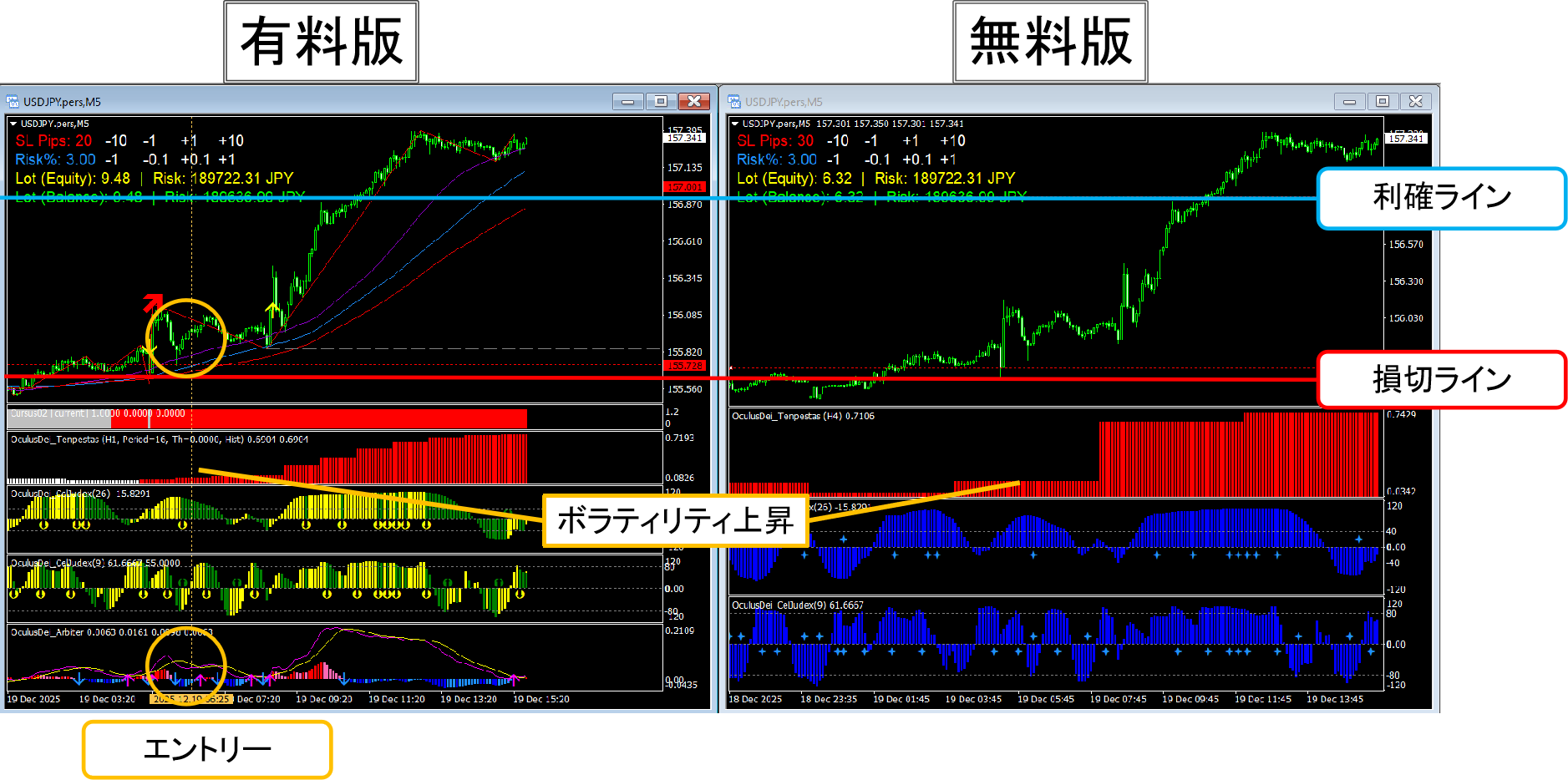 また、環境認識を視覚的に捉えるインジケーター(有料版)を組み合わせることで伸びるポイントでのみの判定を可能にしています。