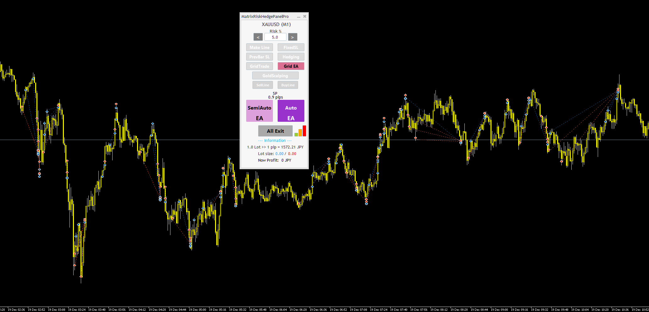 今回のトレードは、相場がどちらに動いても利益を狙える『グリッド手法』を採用しています。