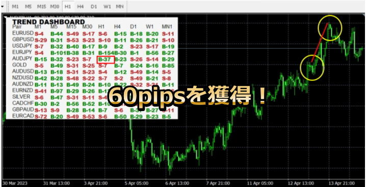 H4(4時間足)のサインが一番勝率が高いので、H4(4時間足)のサインを使用します。