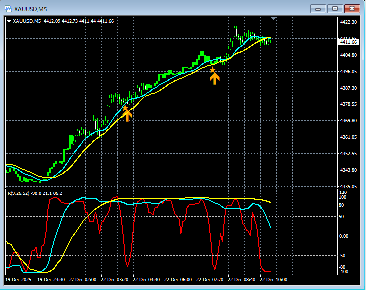 【RCIを極めて移動平均線フィルターで勝つ!!】本日のゴールド XAUUSD 5分足 mBDSRのサイン