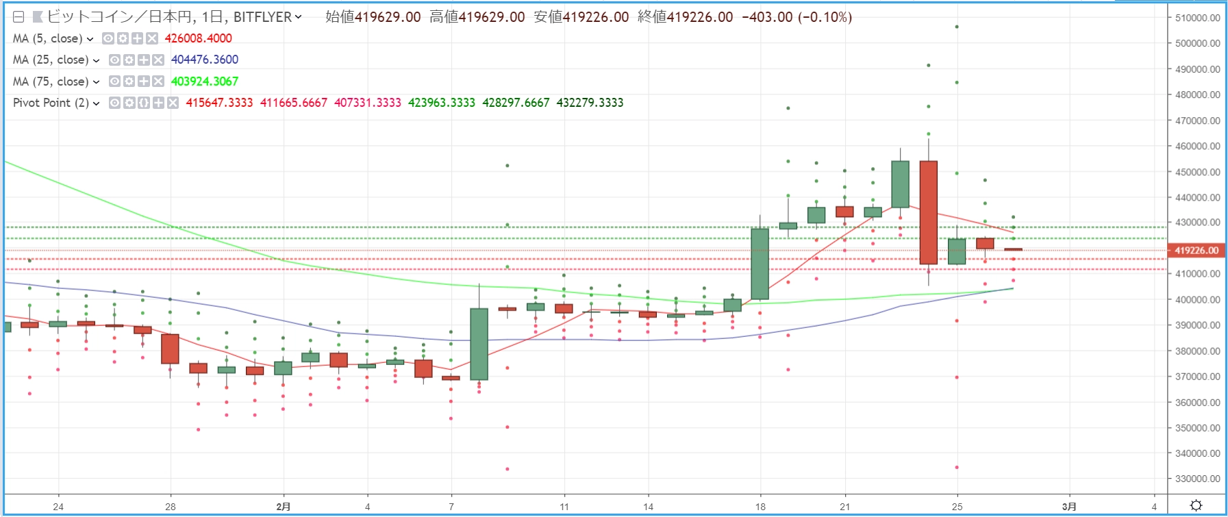 画像は2019年2月27日のキャプチャ。昨日は主要どころ(ビットコイン、ビットコインキャッシュ、イーサリアム、リップル、ライトコイン)が1~3%の下落でした。今日はその流れが継続し、主要どころは1~2%の下落、ライトコインのみ1%の上昇となっています。