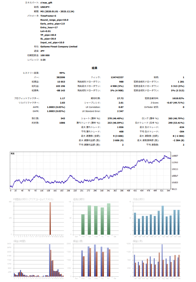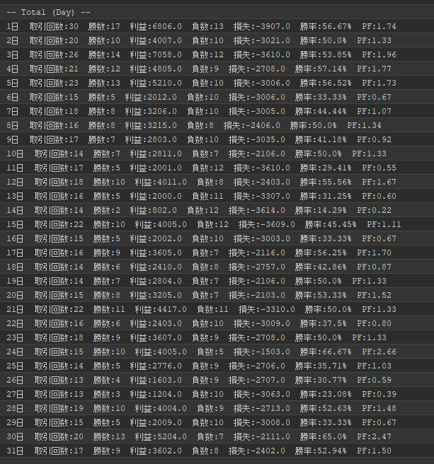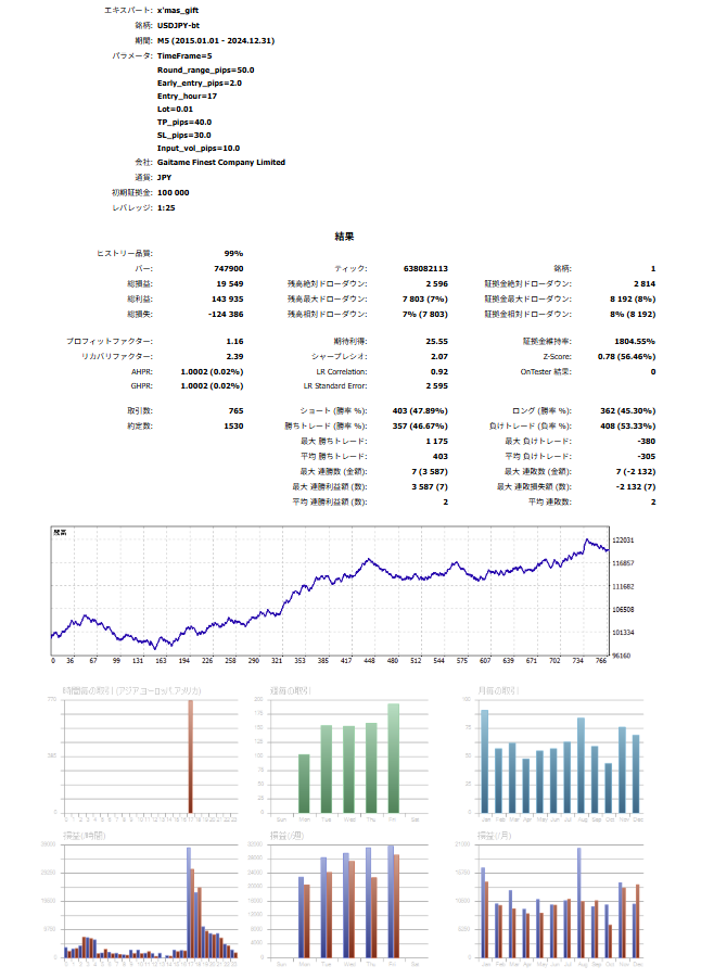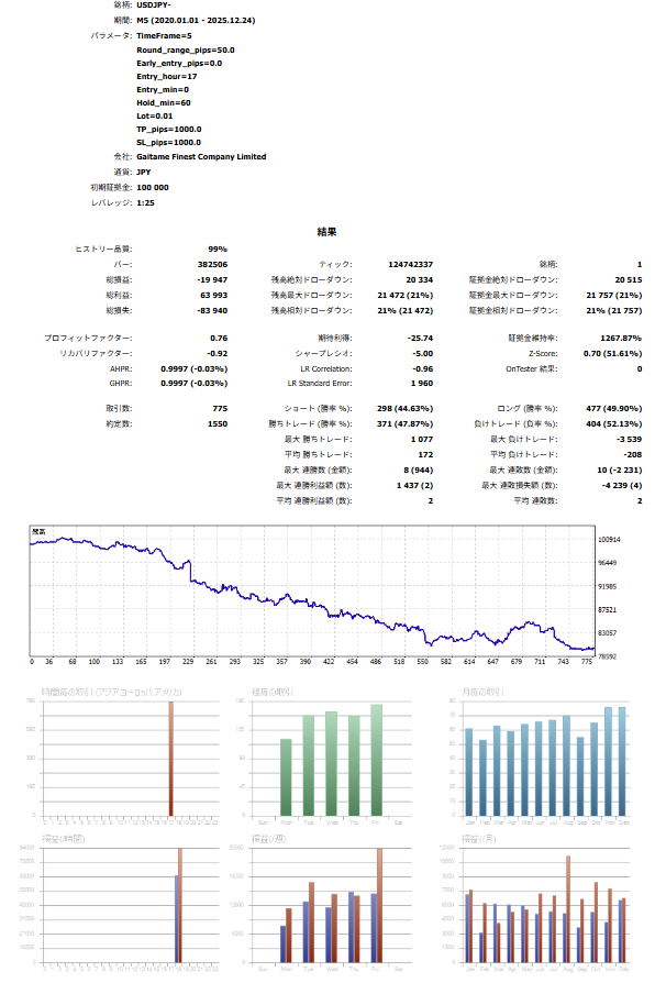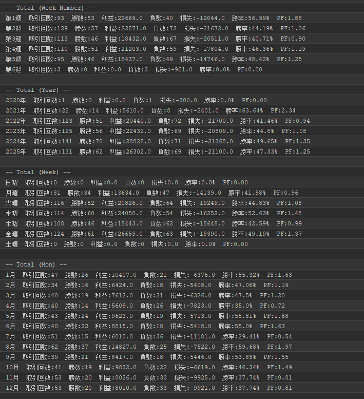 以下エントリー時間時点の集計結果です。(バックテストレポートはクローズ時間に基づいた集計)