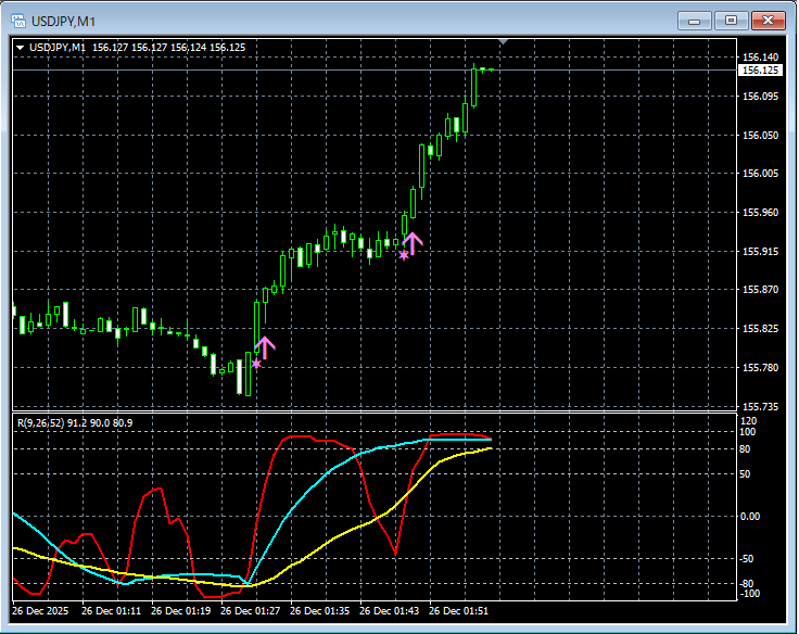 百戦錬磨【RCIを極めて勝つ!!】本日のドル円 USDJPY 1分足 R1R2S2のサイン