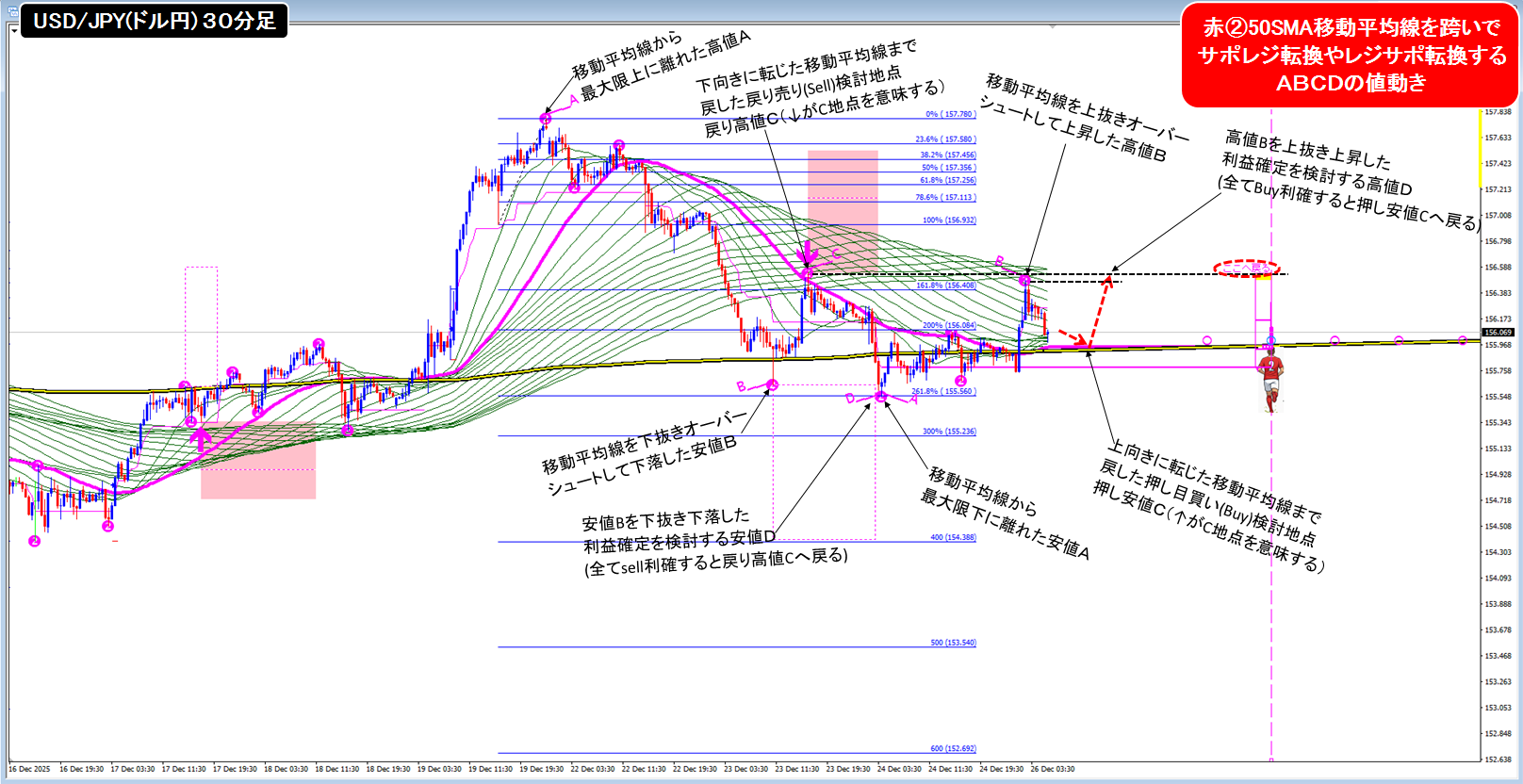 赤②50SMA移動平均線でのサポレジ転換/レジサポ転換の状況
