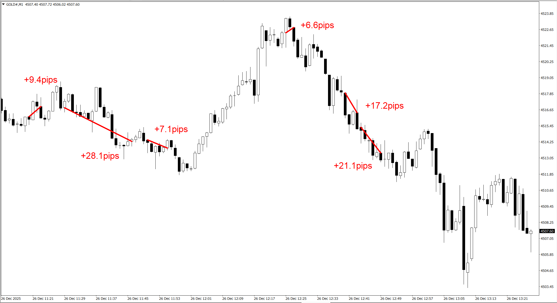 イメージとしては、1回のトレードで数分で完結するようなトレードになります。