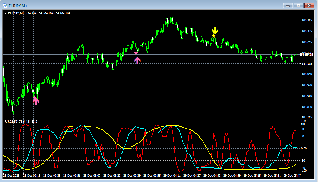 【RCIを極めて勝つ!!】本日のユーロ円 1分足 mBDSRのサイン