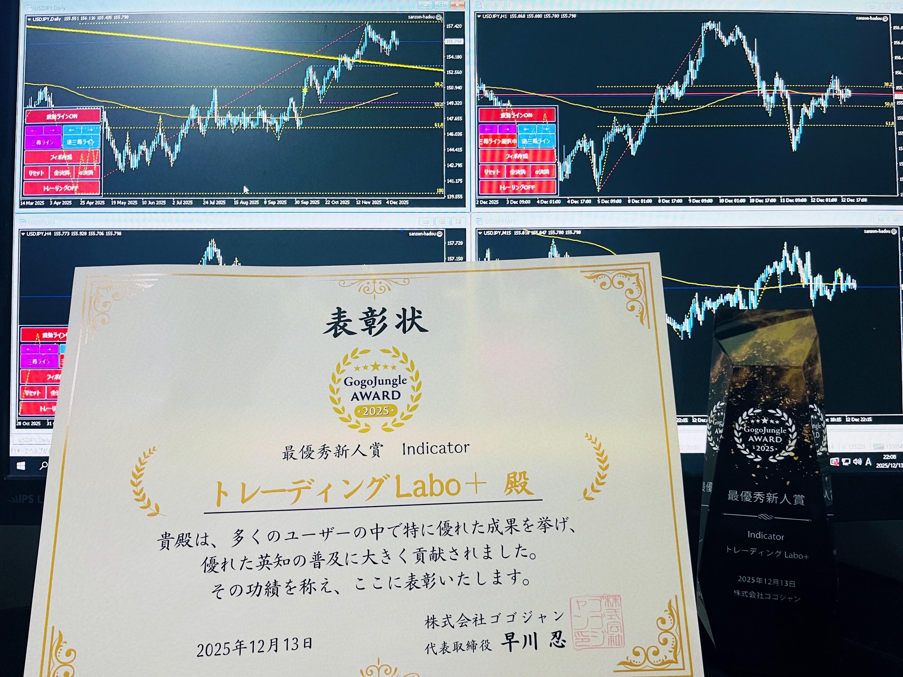 今年は三尊波動FXをリリースし、多くの方に手に取っていただきました。ランキング1位を獲得し、さらにはGogoJungle AWARDで最優秀インジケーターまで受賞することができました。
