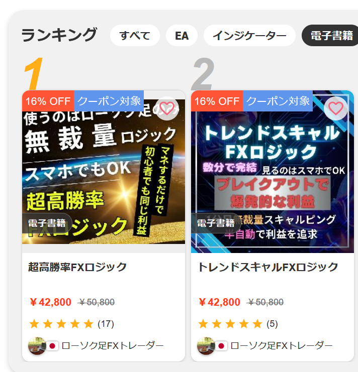 2つの商品がランキングを独占している状態となっています。