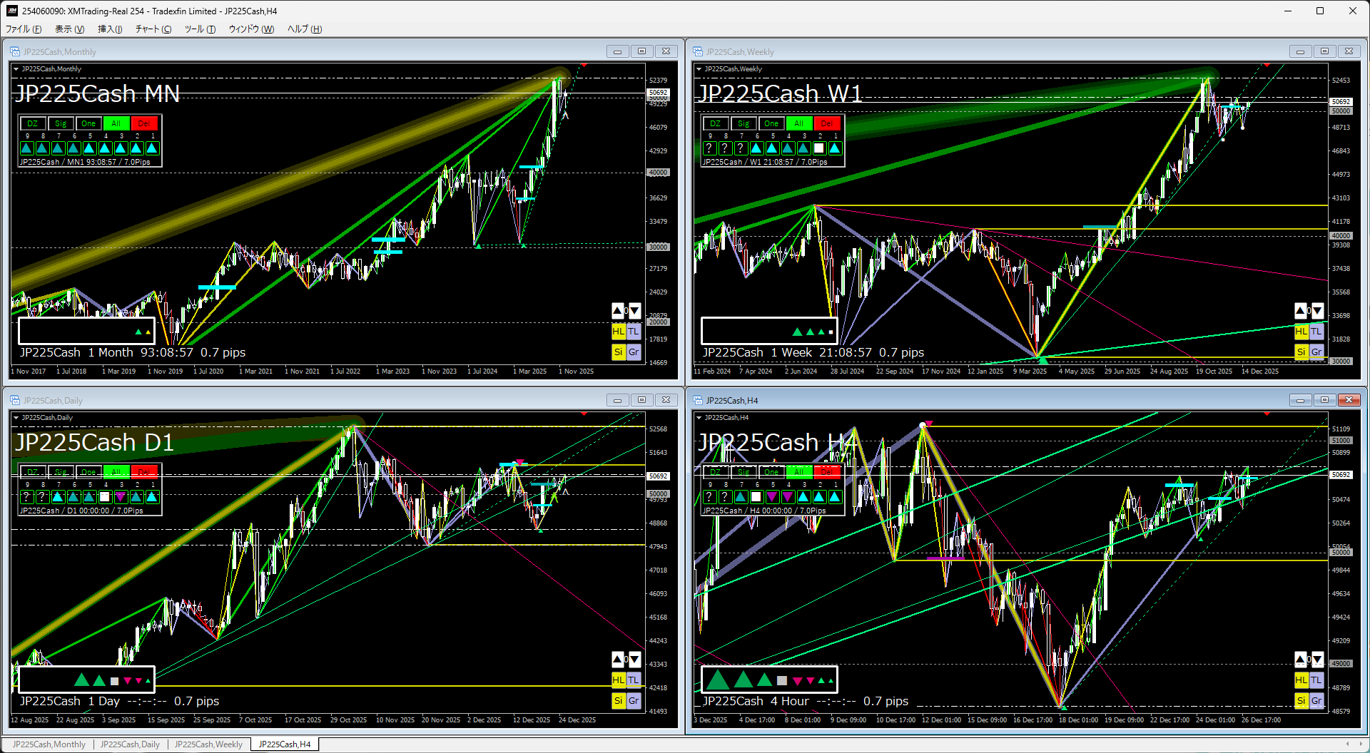 下画像では、『トレンドラインPro2』もチャート上に表示させています。