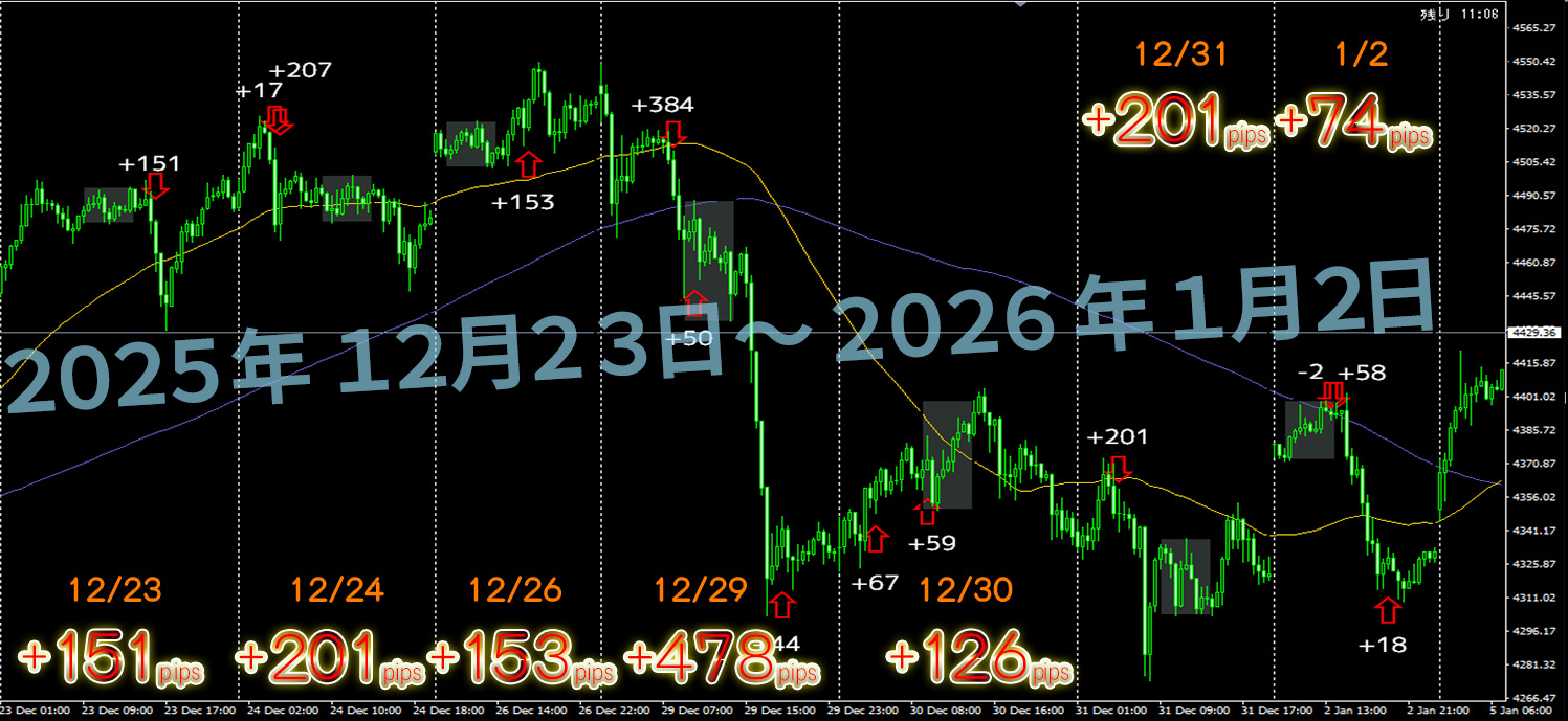 今週+1032pips!12/26~1/2の部分をご覧ください。