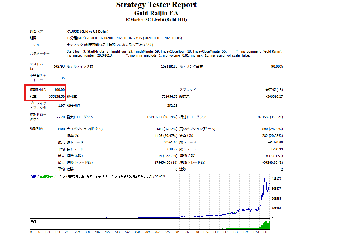 ゴールド雷神EA 100ドルスタート、6年間のリアルバックテスト分析