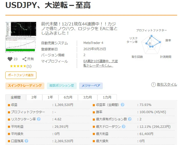 USDJPY、大逆転-至高 - システムトレード - 世界のトレード手法・ツールが集まるマーケットプレイス - GogoJungle