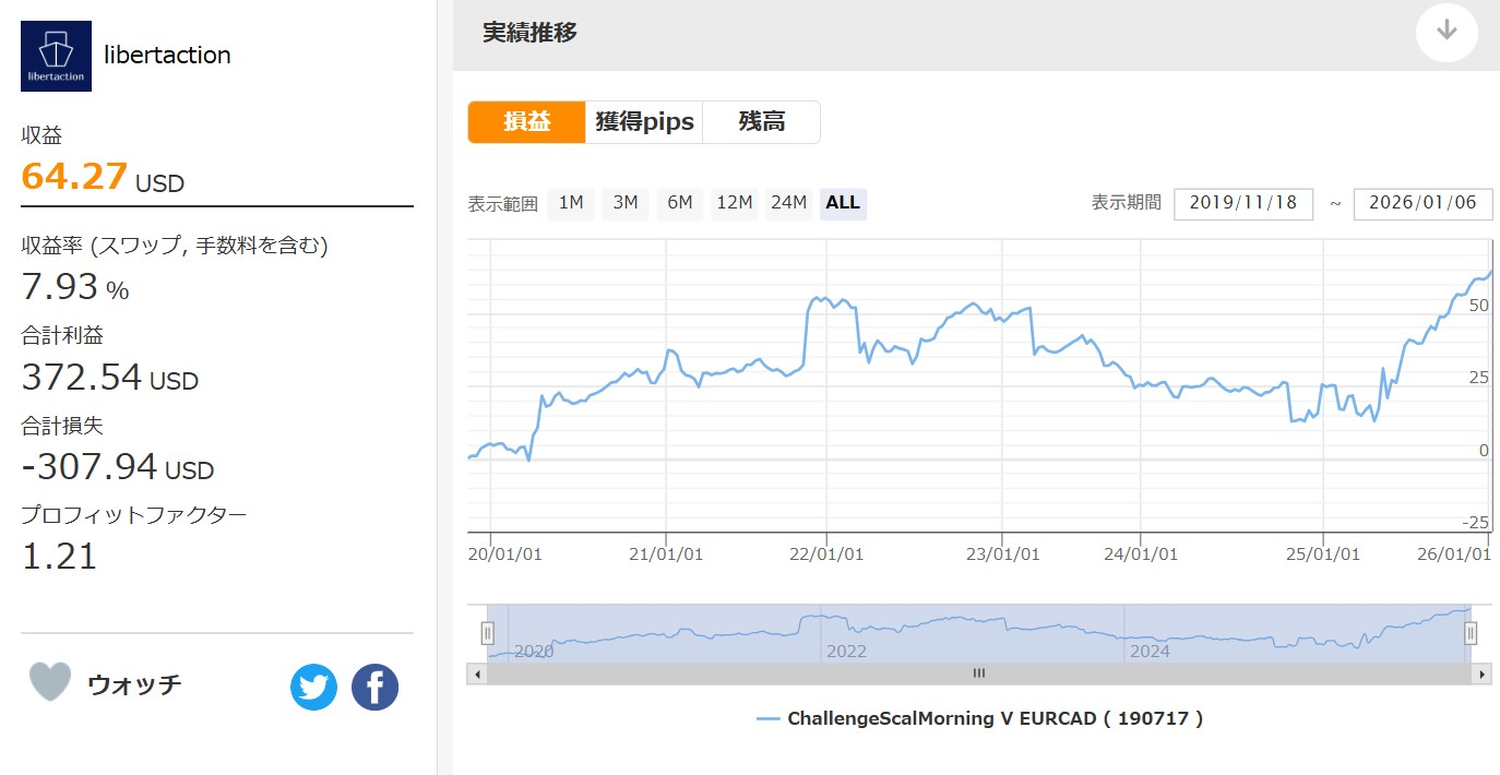 V EURCADが直近で好調、新年早々に最高益を更新しました。