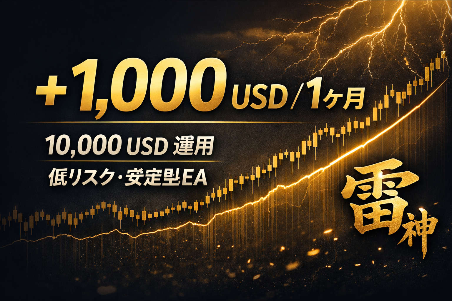 10,000USD運用で+1,000USD|安心重視のGold Raijin EA