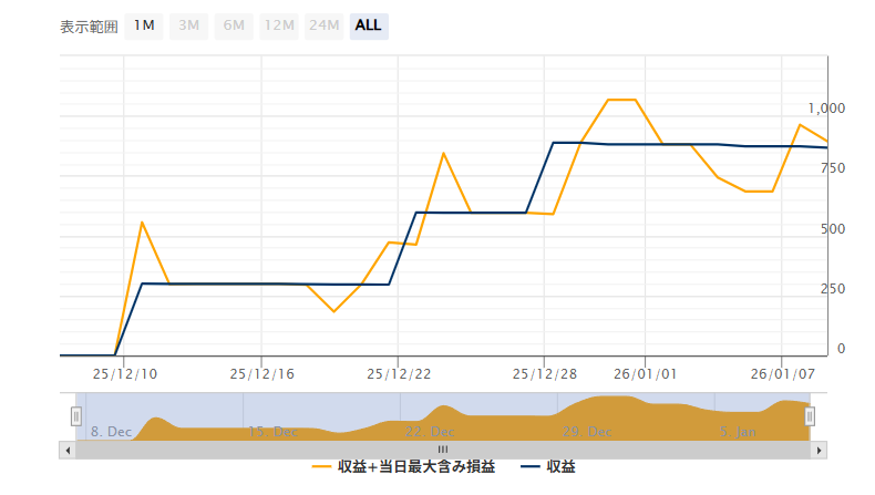 それでも 1ヶ月で +1,000 USD を達成しました。