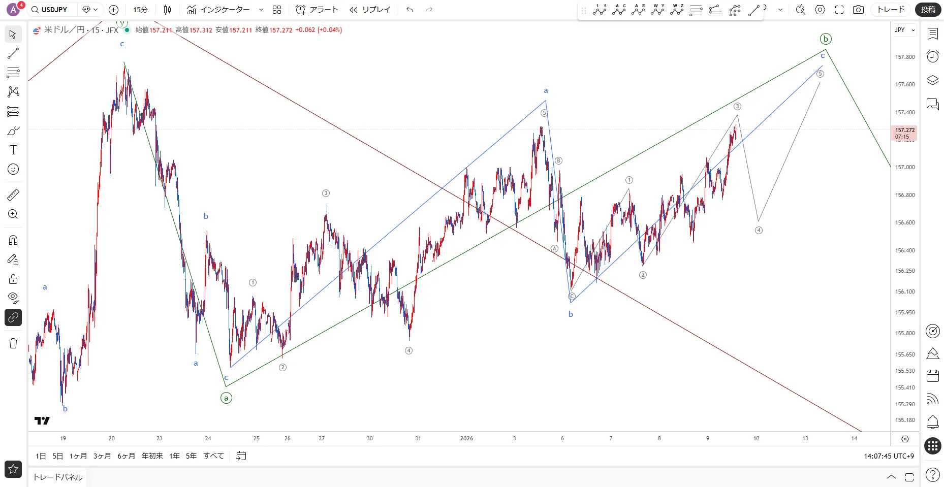 【ドル円】想定通り進行中 / 1月9日(金)エリオット波動分析