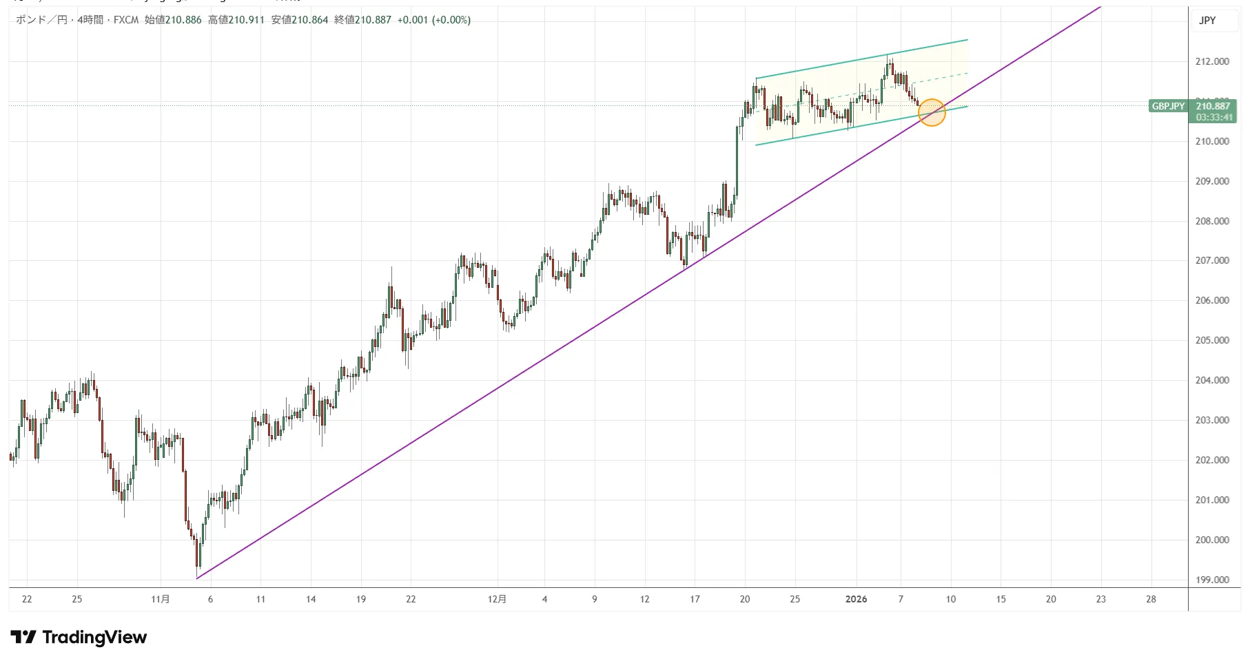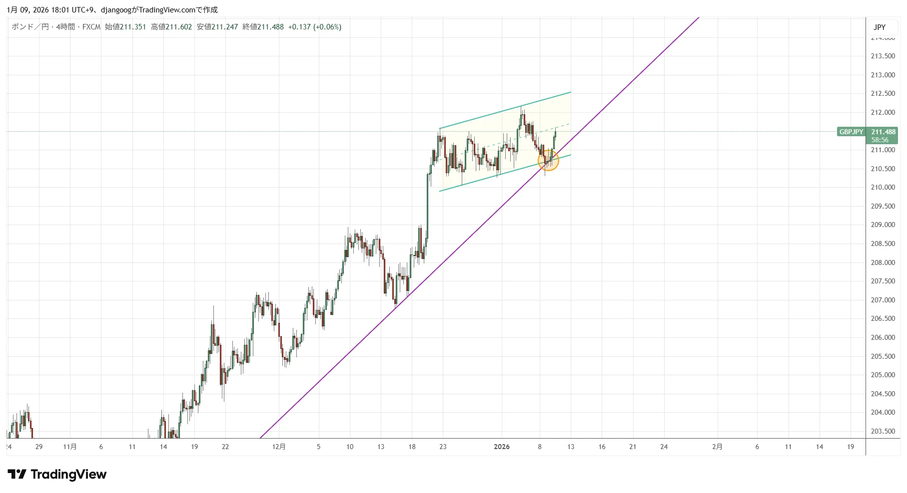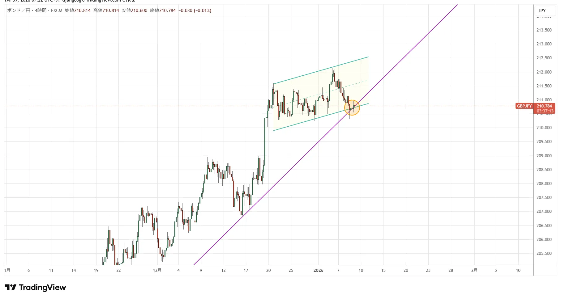 コミュニティ内で、1月8日にアップしましたポンド円です。
