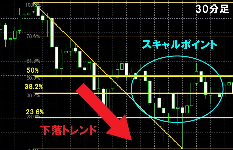 ・時間足:30分足に自動フィボナッチ