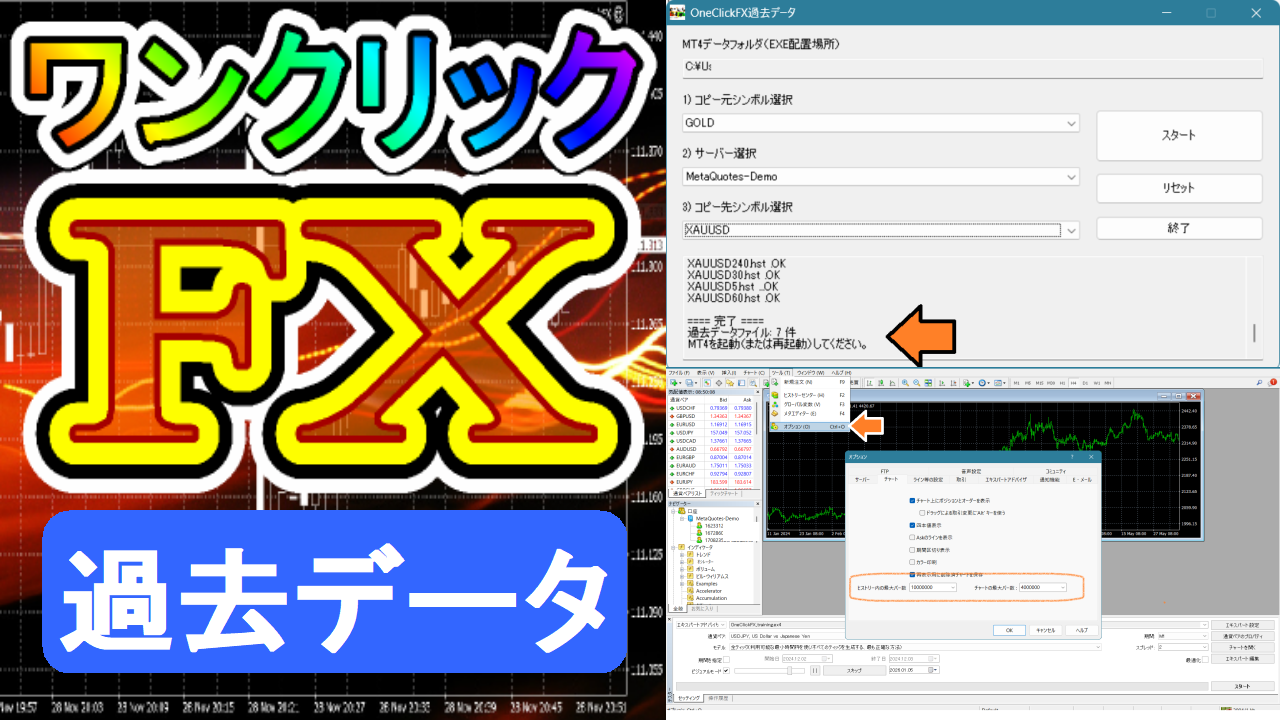 ワンクリックFX過去データを使用すると、MT4の過去データを簡単にセットアップすることができます。
