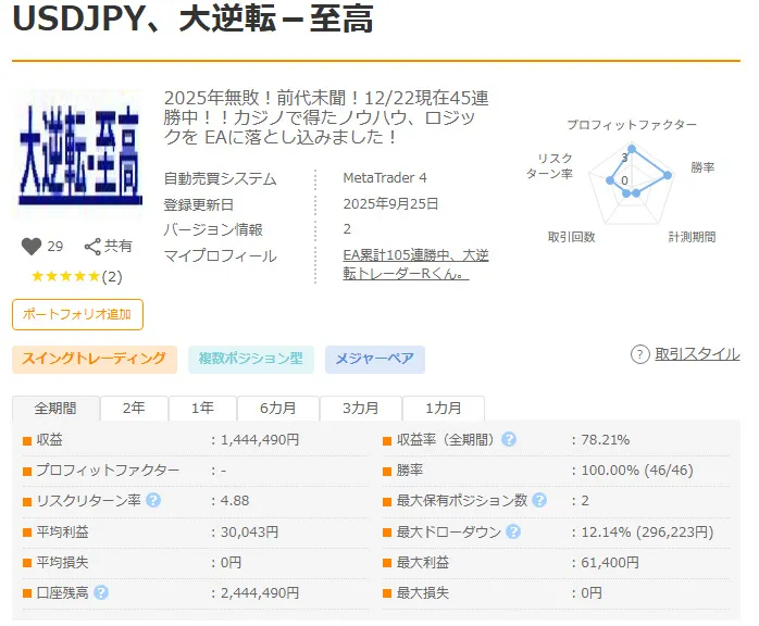 なんと!46連勝中全勝のEAあります!