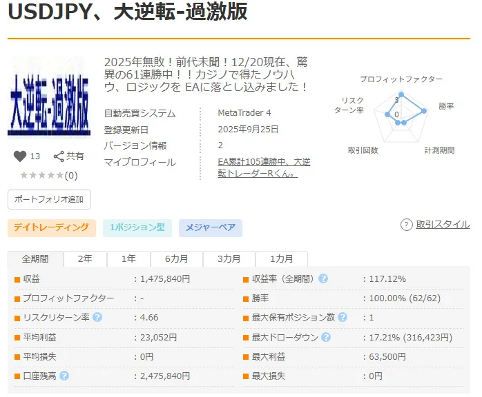 ☆☆2025年無敗!!☆☆1/10前代未聞!62戦全勝&46&11連勝中のEAあります!そして世界初!?次世代手法ライブ配信でEAの方向教えます。