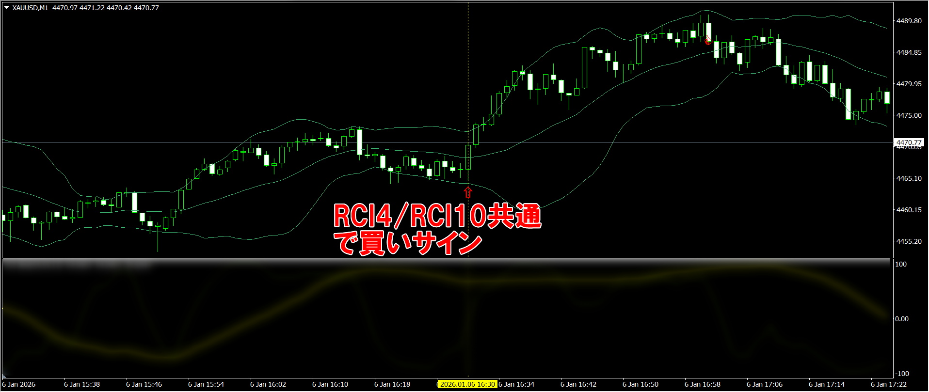 RCI4/RCI6/RCI10は、FXのメジャー通貨ペアだけでなく、ボラティリティが極端に大きいゴールドでも、同じ考え方で機能します。