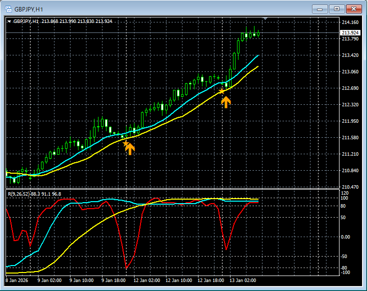 【RCIを極めて移動平均線フィルターで勝つ!!】ポンド円 1時間足 mBDSRのサイン
