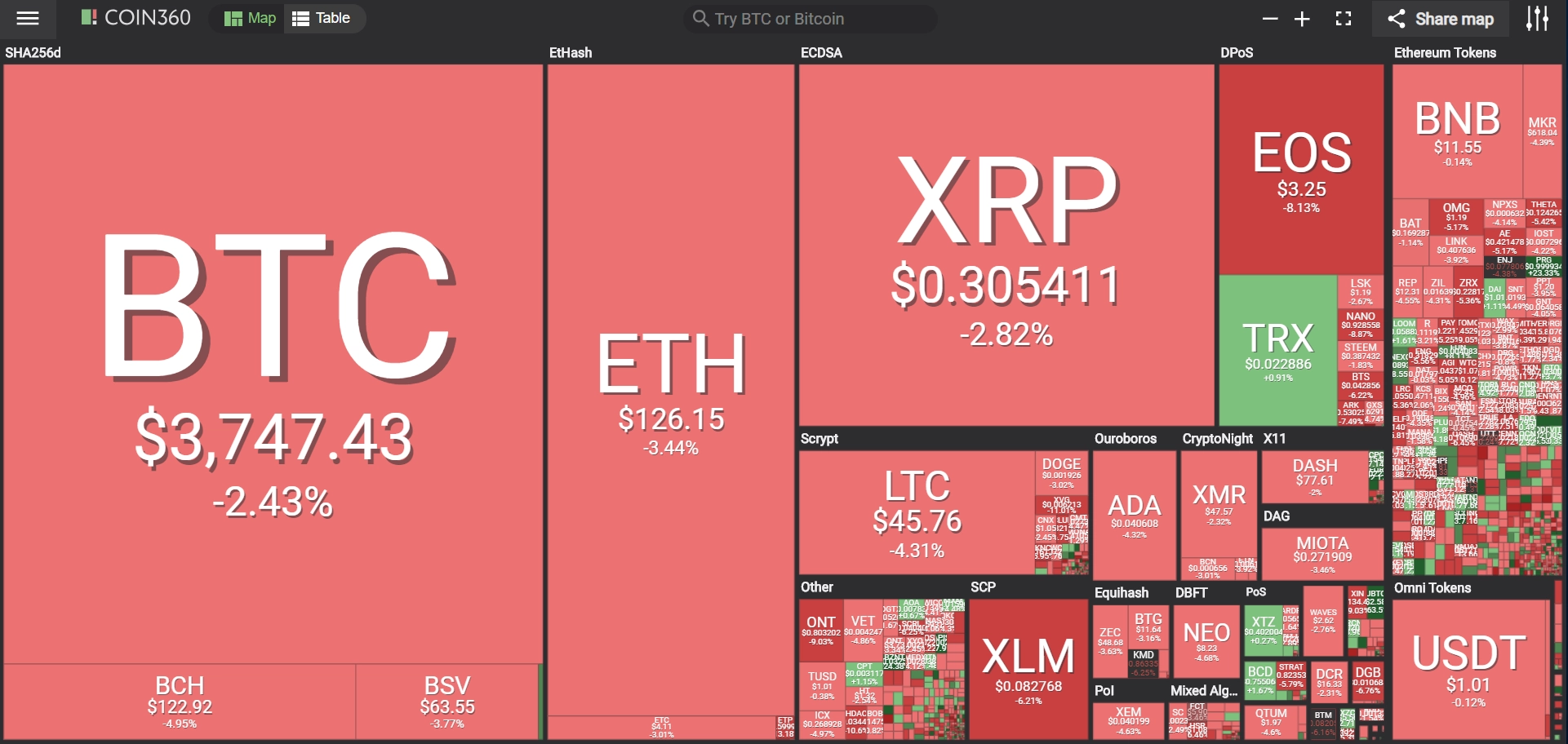 coinmarketcap(コインマーケットキャップ)のサイトから、ドミナンス(各銘柄が仮想通貨全体の時価総額に占めるパーセンテージ)を定点観測していきます。仮想通貨全般が下方向に大きく動き出している相場状況を受け、毎日更新することとし、仮想通貨業界を俯瞰および転換期を早期に発見することを目的とします。