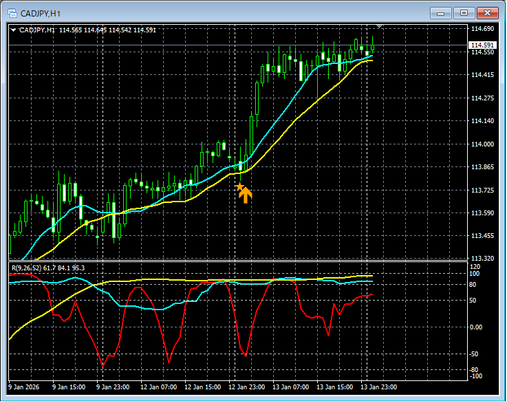 【RCIを極めて移動平均線フィルターで勝つ!!】カナダドル円 CADJPY 1時間足 mBDSRのサイン