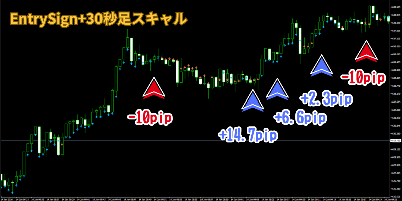 [1/14] エントリーサインと30秒足スキャルのインジを組み合わせてエントリーしてみました!