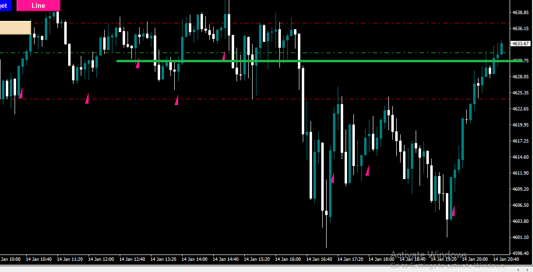 分かりやすい様に、エントリーの価格を緑永露のラインで示しています。