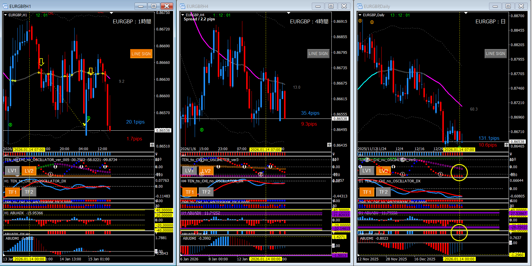 ユロポン(EURGBP)/ 1時間足+4時間足+日足 過去検証