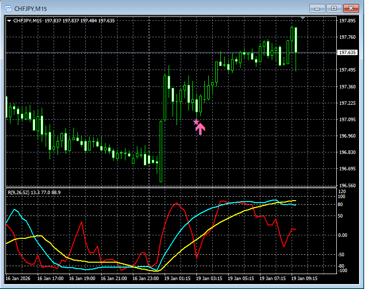 【RCIを極めて勝つ!!】スイスフラン円 CHFJPY 15分足 トレンド転換とmBDSRのサイン