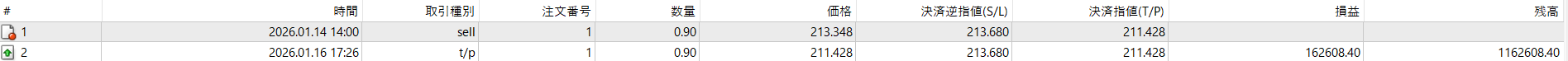 100万円を資金として、リスク3%の複利、自動直近高値+αストップロス、Cursus02およびTempestasフィルターを入れています。結果として+192pips、+162,608円、RR6.3となりました。