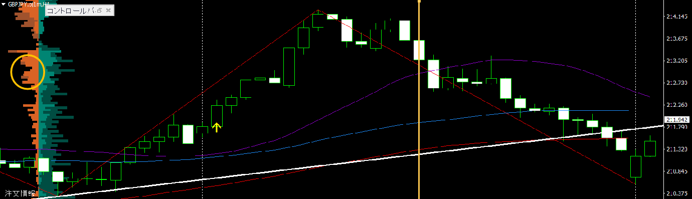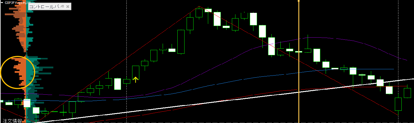 エントリー時点でのオーダーブックを確認します(Orderはエントリーの前も少し遡って確認するのがコツです)。