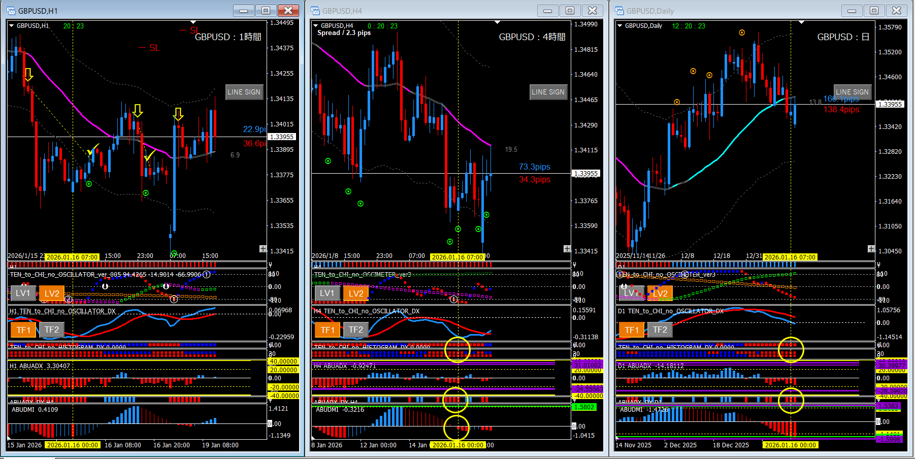 ポンドル(GBPUSD)/ 1時間足+4時間足+日足 過去検証