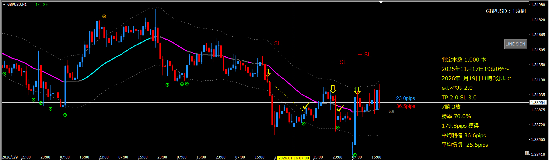 ■1時間足(左側:エントリー足)