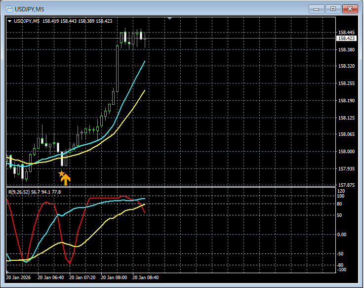 【RCIを極めて移動平均線フィルターで勝つ!!】ドル円 USDJPY 5分足 mBDSRのサイン