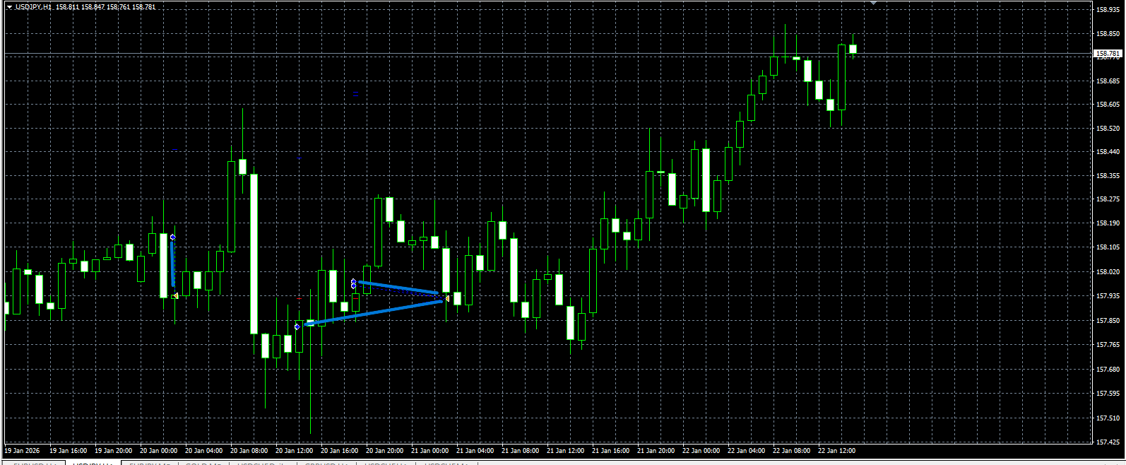 その結果、ドル円は、騙しの動きから