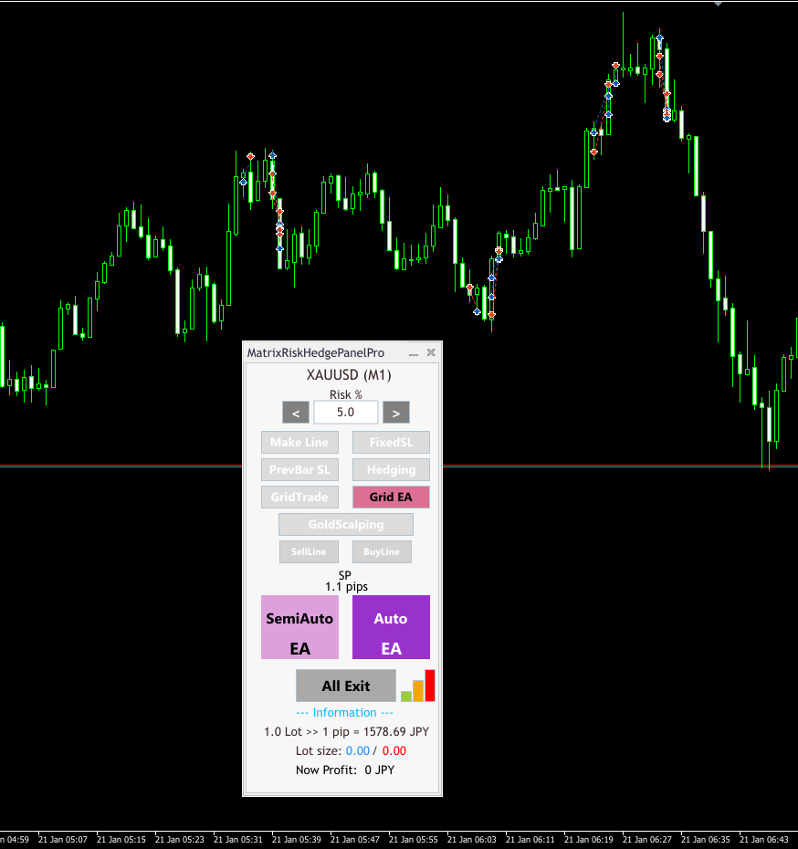 こんにちは! 今日も『MatrixRiskHedgePanelPro』のGrid EAを稼働させました ?