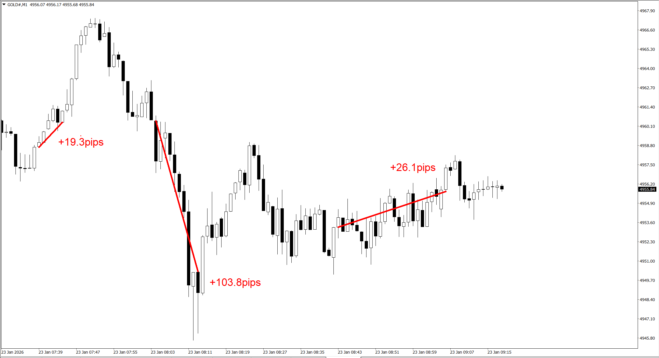 1分足であっても、400pipsを超えるような利益になることもしばしばあります。