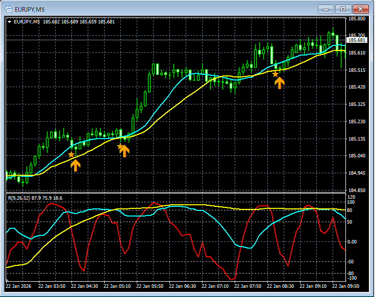 【RCIを極めて移動平均線フィルターで勝つ!!】ユーロ円 EURJPY 5分足 mBDSRのサイン