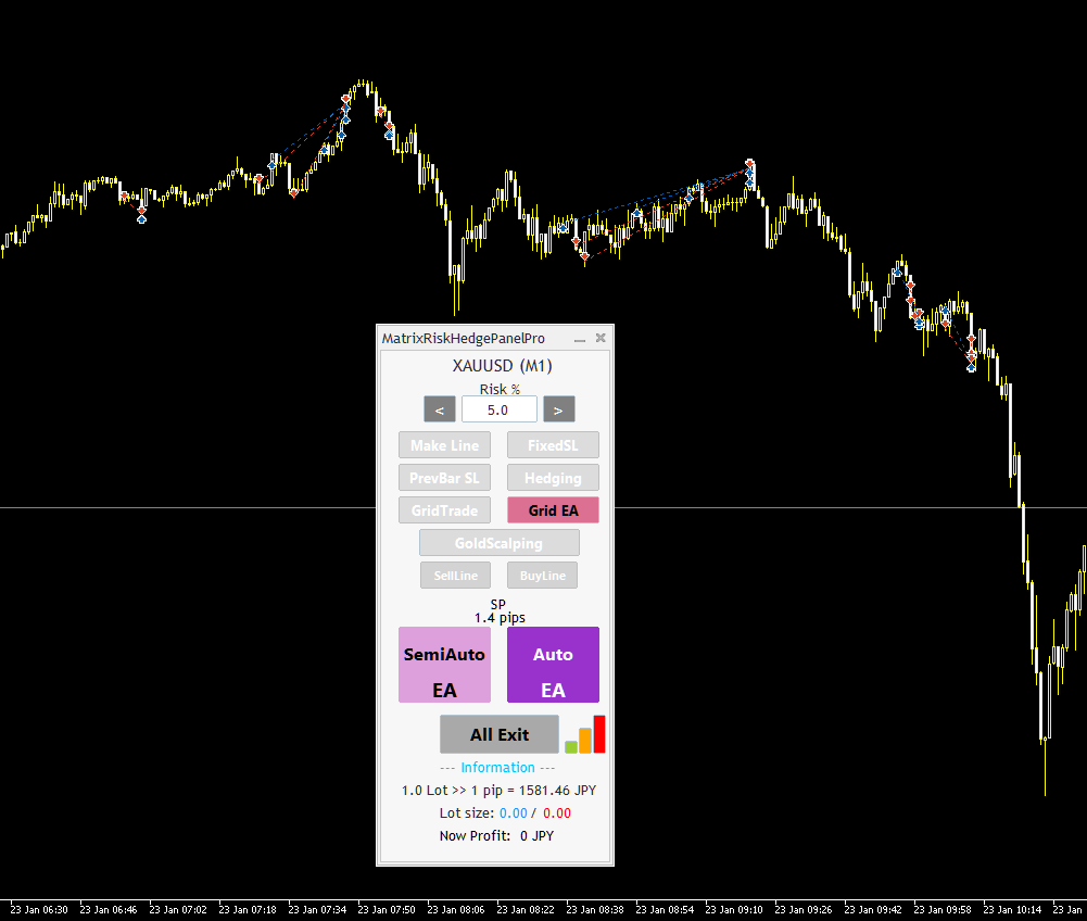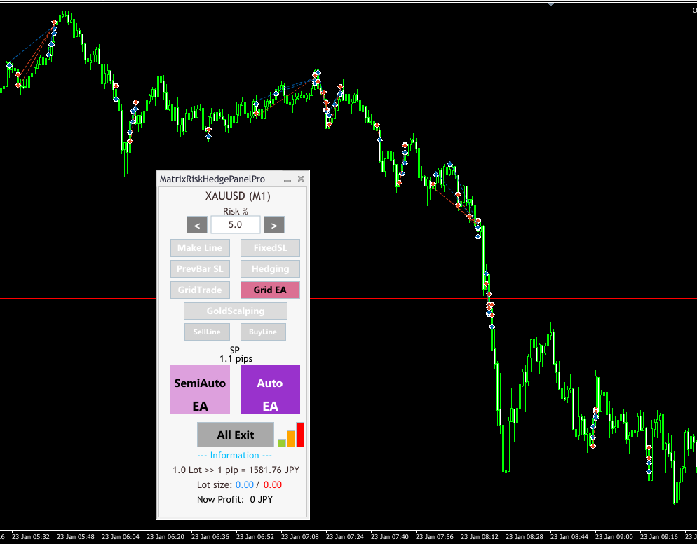 本日も『MatrixRiskHedgePanelPro』を使ったゴールド取引の結果をお届けします。
