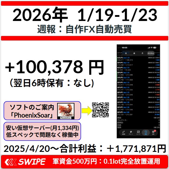 【週報:2026.1.19-2026.1.23】オリジナルEA「PhoenixSoar」の成績報告