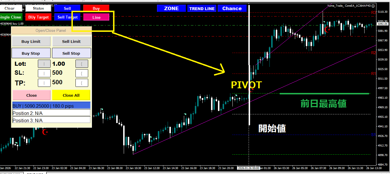 簡単にPIVOTラインを表示が可能です。