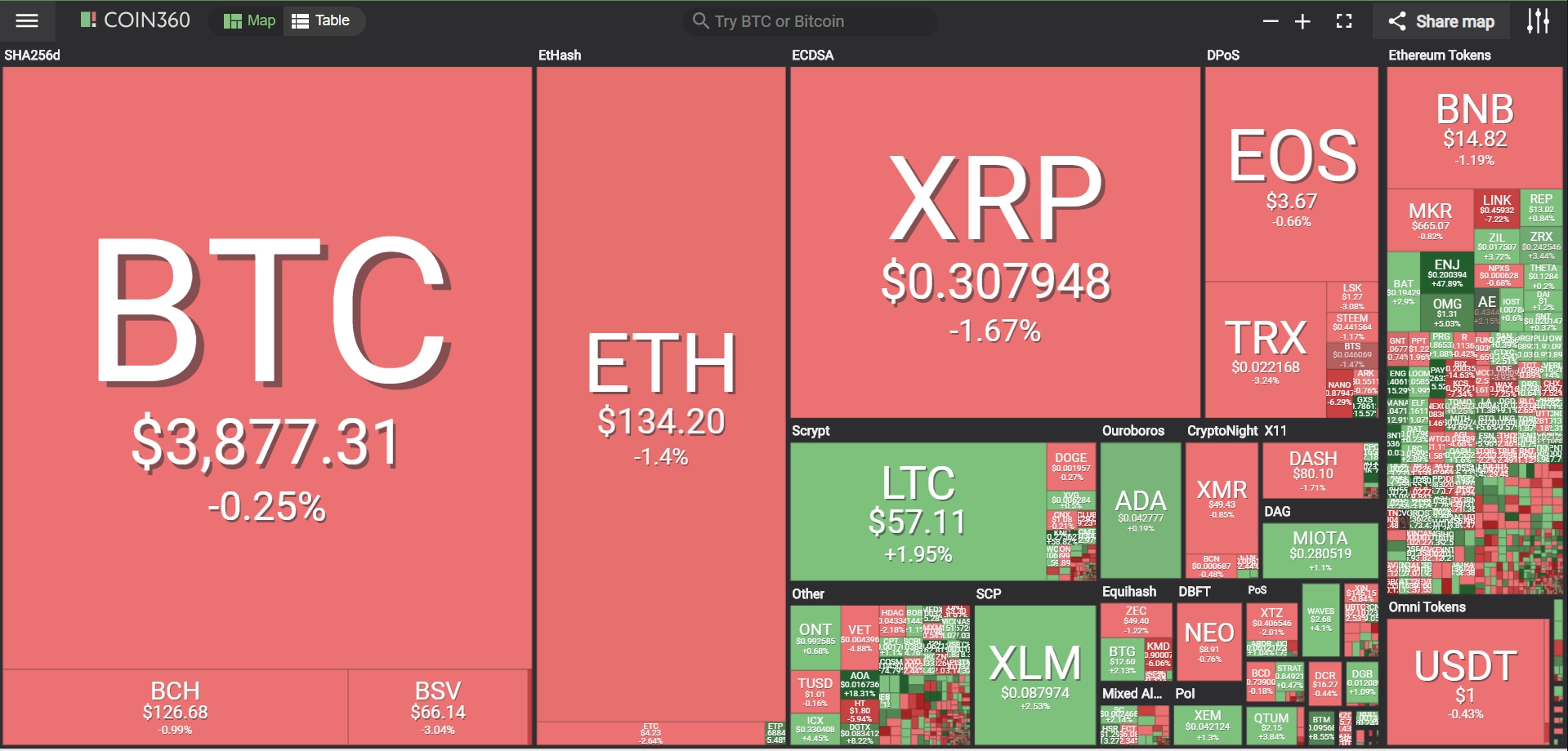 coinmarketcap(コインマーケットキャップ)のサイトから、ドミナンス(各銘柄が仮想通貨全体の時価総額に占めるパーセンテージ)を定点観測していきます。仮想通貨全般が下方向に大きく動き出している相場状況を受け、毎日更新することとし、仮想通貨業界を俯瞰および転換期を早期に発見することを目的とします。
