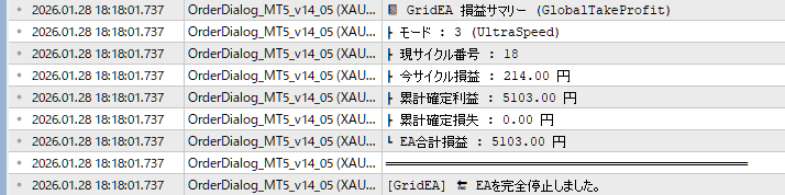 今日の相場は、ゴールドが比較的『直線的な上昇トレンド』を見せてくれました。こういう動きこそ、Grid EAの真骨頂なんです ?